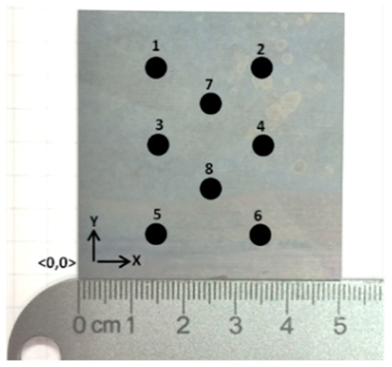 | Location x, y (mm) | 15, 40 | 35, 40 | 15, 25 | 35, 25 | 15, 10 | 35, 10 | 25, 32 | 25, 17 |