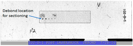 Figure 14 is happenstance since both surfaces of the AA6061 cladding do not have any indication of indentation aligned with the debond from the generation of the laser shock wave.