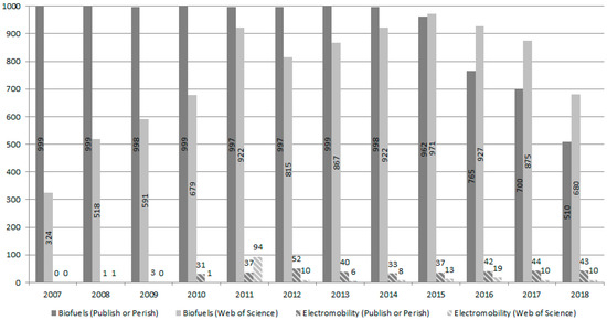 Scientific publications about biofuels and electromobility in the past decade.