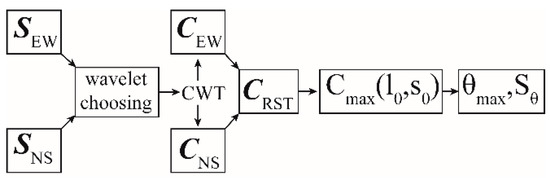 Figure 3 summarizes the procedure discussed above. The procedure of identifying the most unfavorable horizontal direction was identical to that verified and used by [1], despite the newly designed procedure of adaptive mother wavelet selection being adopted before projecting the seismic signal into its time–frequency plane. Since a different mother wavelet would surely result in a different pattern of the time–frequency plane [23], it was necessary to evaluate the level of similarity for different mother wavelets before conducting the CWT to achieve better resolution in the time–frequency plane.