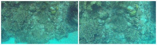 - The images are taken from above the coral reef with the image plane parallel to the seafloor.