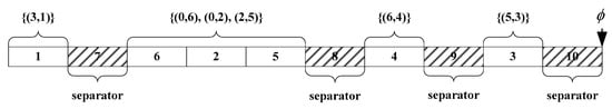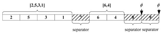 The encoding and decoding scheme is the first and most important step to solving the optimization problem []. In this paper, the bat position, , contains both the information of the cable connection layout of the wind farm ( ⋲ [1,2,…,W]) and the available cable sectional areas (), where W is equal to M + K-1 and H equal to M + N-2 respectively.