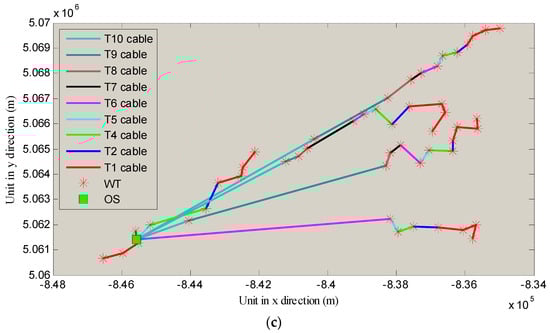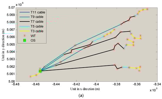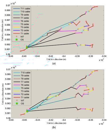 In this scenario, it is assumed that 12 sorts of cables in total can be used. The optimized layouts are shown in Figure 7.