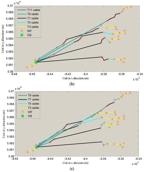 - The cable length is selected according to the geometrical distance without considering detailed practical situations, such as the barriers, restriction in the sea, and the length from the WT foundation to the sea bottom;