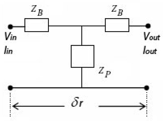Taking into consideration the transmission line theory, it can be proved that each layer of infinitesimal thickness δr is equivalent to a T-circuit as the one shown in Figure 3