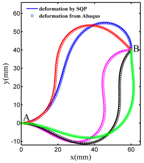 Then, we compare the results of the ABAQUS simulation with the results of the SQP algorithm to obtain Figure 8.