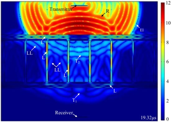 4.1. The Mode of Acoustic Wave in Honeycomb Sandwich Composite