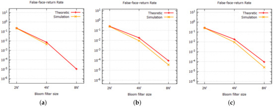 For example, assume an input . The l-BF is first queried using as the hash key. If at least one non-conflict cell exists, the l-BF returns level value 4. Since the returned value is larger than the number of components used in querying, it can be noticed that node is an LP-node. The p-BF is queried with the key . In this case, the p-BF returns a negative result. Hence, the l-BF is queried again using and returns 2. Since the level information returned by string is the same as the number of components, node is considered to be an ordinary node. Hence, the search procedure queries the l-BF again using . The l-BF returns a negative result, meaning that neither node nor its children exist. Hence, level 2 is the last level and the p-BF is queried using . The search procedure is completed by returning output face 2. In this case, the total number of Bloom filter queries is 5, and no accesses to the off-chip hash table occur.