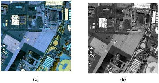The (a) RGB color composite and (b) 88th band data of the original hyperspectral image.