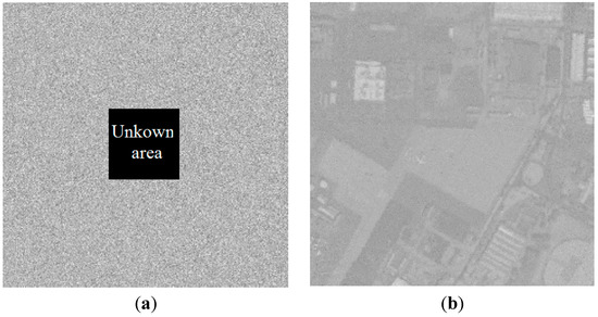 The occlusion attack and noise attack are considered and utilized for the robustness analysis of the proposed cryptosystem. To simplify the calculation, the 27th encrypted band is considered and utilized in occlusion and noise attack, analysis. In fact, the other encrypted band can also obtain the same result. In the occlusion attack experiment, the decryption approach is employed by using the correct key from the partly occluded 27th band image, which is displayed in Figure 6a. Note that the occluded pixels are substituted with 0 in the experiment, and the corresponding recovered result is presented in Figure 6b. Apparently, the outline information of the secret image is recognizable.