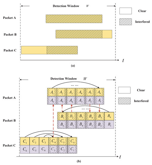 represent the chunk number of packets A, B and C, respectively. The packets are encoded and transmitted with the concept of flipped diversity as mentioned above, and then SIC technique is adopted to recover the interfered packets. As shown in