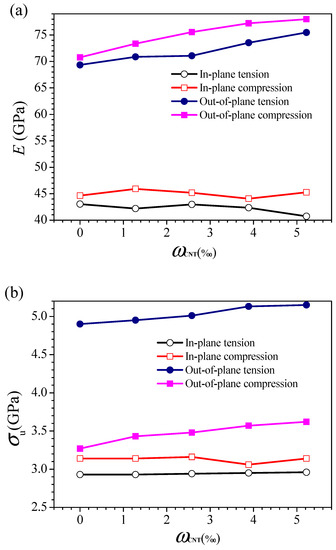 (a) Young’s modulus E and (b) ultimate strength σu of CNHONNs with different ωCNT of CNTs.
