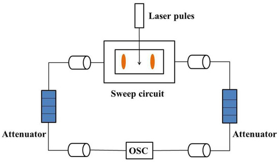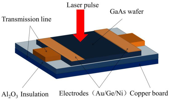 GaAs photoconductive semiconductor switches (PCSSs) have many advantages, including fast response times, high repetition rates (in the order of GHz), simple mechanical structure and low jitter [1,2,3,4]. Thus, GaAs PCSSs have been used in numerous applications, such as ultra-wideband radiation sources, injection wave generators, and precise synchronization control systems [5,6,7]. The GaAs PCSSs also have been widely used in THz fields as an emitter and detector. When femtosecond laser pulses are focused on the gap of GaAs PCSSs, photo-excited carries are generated at the semiconductor’s conduction band, and are subsequently accelerated by a bias electrical field, and terahertz waves are radiated at the same time [8,9,10]. In some special applications, positive and negative symmetric pulses with a fast rising edge are necessary. For example, in a streak camera, the performance of the sweep circuit affects its overall performance profoundly. Firstly, the slope of sweep voltage decides the sweep speed of stripe tube, thus dictating the stripe tube’s temporal resolution. Secondly, the stripe tube’s temporal resolution in integral mode rests with the jitter time of the sweep circuit. Finally, the linearity of scanning voltage signal has an effect on the sweep linearity of stripe tube, and thus influences the imaging quality of the camera [11,12,13].