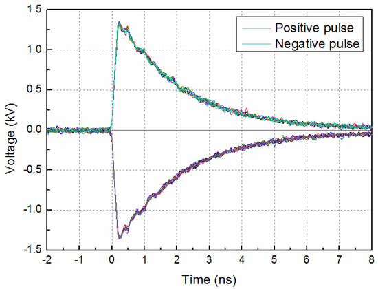 The output waveforms at a bias voltage of ± 2.0 kV and a laser pulse energy of 97.5 μJ.