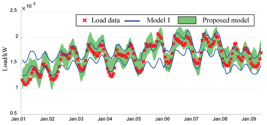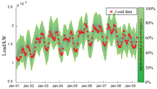 Electric load forecasting (LF) is an indispensable task for electric utilities in the long term [1]. As a fundamental business problem, LF is associated with decision-making processes in power system plannings, operations, energy trading and so forth [2,3]. Prediction of future load demand is a tendency forecasting subject based on actual load data. Methods of tendency forecasting are generally classified into three categories: the physical approaches, the statistical approaches and the artificial intelligence (AI) approaches [4]. In practice, the diversity of data sources makes it impossible to build physical models for LF [5]. Moreover, since the load demand is affected by the chaotic nature of weather conditions, statistical approaches such as exponential smoothing, auto regression (AR), moving average (MA) and their variants are insufficient to address the nonlinearity and randomness properties of load data [6]. Consequently, AI approaches have become the mainstream of LF methods. Traditional LF studies apply AI-based methods of neural network [7,8,9], support vector machine [10,11,12] and other methods [13,14] to forecast the load demand with exactly values. Although the performance of traditional LF models can be improved by optimizing the AI model, the forecasting uncertainty at each load point is unknown [15]. To develop efficient strategies for power market management, more detail about forecasting results should be provided [16].