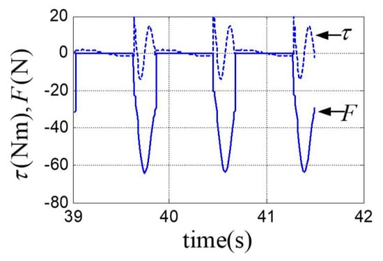 Before discussing the control issues of the systems (21), (22), (23) or (24), it is necessary to point out that the Lagrange multipliers in Equation (22) can commonly be eliminated by properly using the dynamics under the least constraint mode and the constraint Equation (2). Then, the state space dimensions of the system (22) under full constraint mode will reduce. Nevertheless, after eliminating the Lagrange multipliers , the dynamics of full constraint mode can also be expressed as the form of Equation (21), as it should be, and the dimensions of the state space of the continuous time subsystems in double modes are usually different.