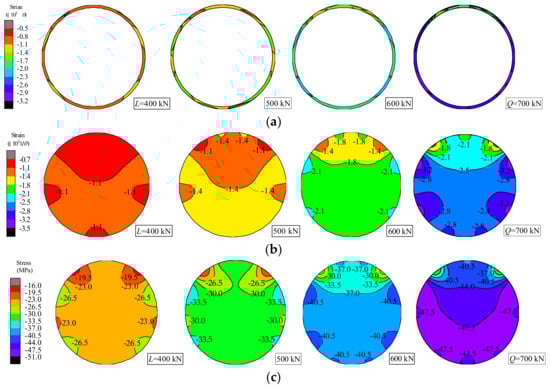 - Chang, X.; Luo, X.L.; Zhu, C.X.; Tang, C.A. Analysis of circular concrete-filled steel tube (CFT) support in high ground stress conditions. Tunn. Undergr. Space Technol. 2014, 43, 41–48. [Google Scholar] [CrossRef]