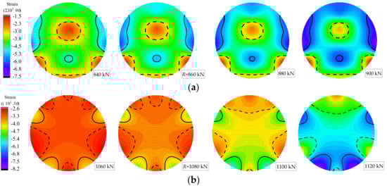 5.2. Analysis of Stressing State Modes Based on the Measured Strain