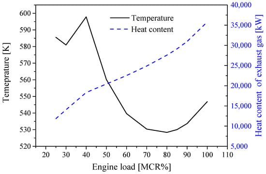 Temperature and heat content available in exhaust gas under different loads.