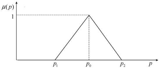 Prior probability of nodes in fault inference is generally obtained based on statistical data of historical maintenance. However, due to small statistical magnitude or extreme operating environment of electronic equipment, certain fuzziness is inevitable in values of prior probability. According to a small amount of statistical information, the central value of fault probability is given and the interval [, ] of fault probability is presented based on experts’ experience. After that, the simple triangular membership function is used to represent fuzzy number of probability, referring to [,], Membership function of triangular fuzzy number shown as Figure 3, that is, the fuzzy set of faults of node in the fault state is expressed as , namely .