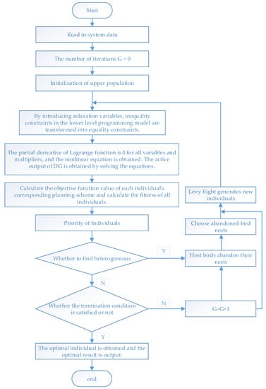 The detailed flow chart of solving multi-objective bi-level programming model by CS algorithm and PDIPM method is shown in Figure 18. Among them, G is the number of iterations.