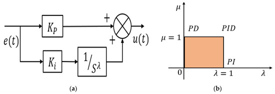 From Figure 5b, the difference of fractional order PID controller with the conventional PID controller is the presence of terms and These parameters increase the degree of freedom and hence the controller performance improves depending on the type of system and problem in hand.