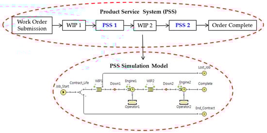 Once the PSS is deployed in the field, it is of critical importance that the deployed PSS is operational, meeting the contracted availability requirement promised to the customer. One way to meet the availability requirement is through implementing appropriate maintenance policy, which includes preventive maintenance and predictive maintenance. There have been several works published in the field of preventive maintenance and predictive maintenance. Relevant works on preventive maintenance include work by Adhikary et al. [11], who proposed multi-objective genetic algorithm approach to optimize availability and maintenance cost through preventive maintenance scheduling model, work by Moghaddam [12], who proposed a nonlinear mixed-integer optimization model for a manufacturing system, and the work by Mokhtar et al. [13], who proposed a maintenance policy optimization framework using Bayesian networks. Additionally, related works on predictive maintenance include work by Van Horenbeek and Pintelon [14], who proposed a dynamic predictive maintenance policy and compared it with other various maintenance policies to show that the proposed policy results in significant cost reduction. Another work by Wang et al. [15] proposed cloud-based predictive maintenance paradigm to advance the state of intelligent manufacturing. Finally, there is a research trend that aims to link big data to improve predictive maintenance [16,17].