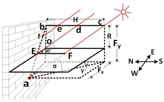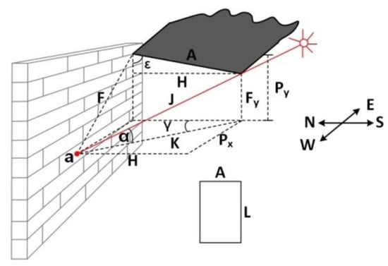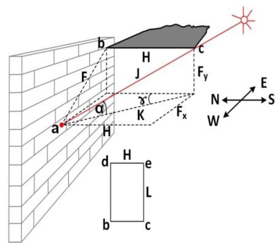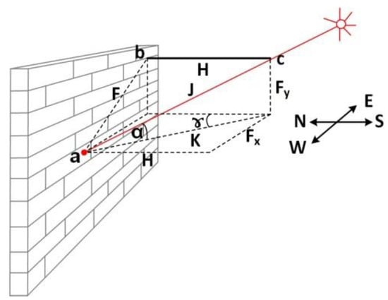 By substituting Equation (2) into Equation (1), we get the coordinates of the shadow point “a”, i.e., the shadow variation on the wall during the day maybe calculated: