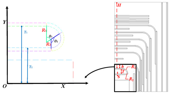 Among them, the coordinates of the center of the two arcs are (x1, y1) and (x2, y2). Values T1 and T2 are the ordinate values of the upper and lower surfaces of the electrostatic ring (excluding the insulating layer). As can be seen from the above equation, R2 and θ2 can be derived from R1 and θ1. Therefore, the four optimization variables R1, θ1, R2, and θ2 can be simplified into two variables, namely R1 and θ1.