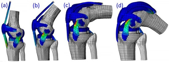 - Taylor, M.; Barrett, D.S. Explicit finite element simulation of eccentric loading in total knee replacement. Clin. Orthop. Relat. Rec 2003, 414, 162–171. [Google Scholar] [CrossRef] [PubMed]