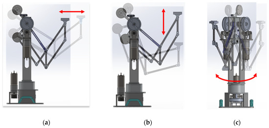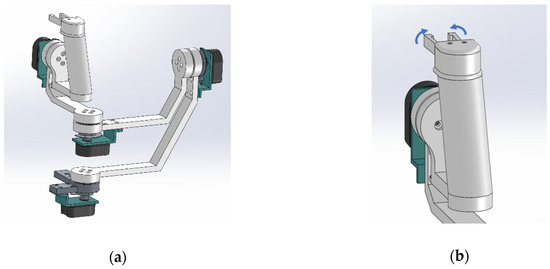 As shown in Figure 5, the 3-DOF x-y-z positioning device is constructed by combining a double four-bar structure and a five-bar structure. The 4-DOF mechanism is constructed by combining three-axis rotational motion with one additional redundant DOF and one grip motion, as shown in Figure 6.