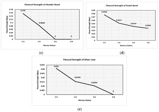 Flexural strength for (a) English bond; (b) Flemish bond; (c) header bond; (d) Dutch bond; and (e) silver-lock bond.