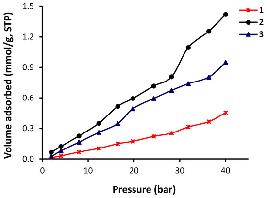 3.3. Porosity Measurements and Gas Storage Capacity of 1–3