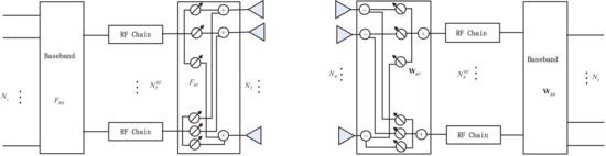 At the receiver, the received signals on all antennas are combined with a combiner composed of the RF combiner and baseband combiner , which can be expressed as