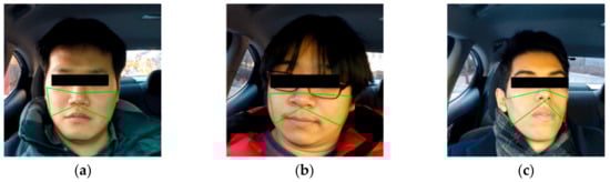 Because our framework was designed to be employed under driving conditions, a real driving dataset was collected. This dataset included 19 subjects, both male and female, in their 20s to 30s. The test subjects were from the Middle East and Asia (Korean, Chinese, and Taiwanese), with some wearing glasses (Figure 4).