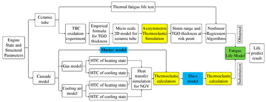 The high-integrity life prediction approach for the TBC on a NGV with the master–slave model is shown in Figure 2.
