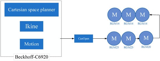 In the fourth experiment, the Beckhoff controller, which is commonly used in the industry, was used and the general algorithm was implemented in the controller. The robot controller sends motion commands to the drive at a certain period. This requires the controller to complete the kinematic inverse solution within a specified amount of time to ensure the continuity. A shorter period results in a higher real-time performance. The period used in this article was 2 ms. The 2 ms cycle is sufficient to meet the general accuracy requirements. For example, in Ref. [] the medical robot can accept a closed loop period of 20 ms. In other words, the proposed algorithm in this paper could achieve a closed-loop period higher than industrial demand in equipment commonly used in the industry. The fast closed-loop period means that the algorithm has higher computational efficiency.