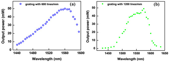 - Gao, F.; Luo, S.; Ji, H.M.; Yang, X.Z.; Liang, P.; Yang, T.S. Broadband tunable InAs/InP quantum dot external-cavity laser emitting around 1.55 μm. Opt. Express 2015, 23, 18493–18500. [Google Scholar] [CrossRef]