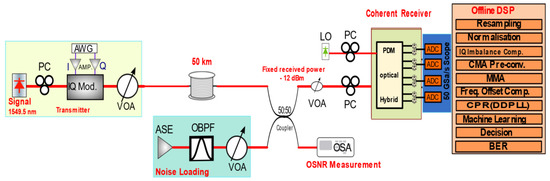 - Zibar, D.; Piels, M.; Jones, R.; Schäeffer, C.G. Machine Learning Techniques in Optical Communication. IEEE J. Lightwave Technol. 2016, 34, 1442–1452. [Google Scholar] [CrossRef]