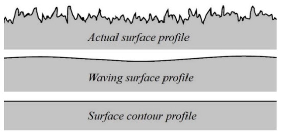 The wall wear that is investigated in this paper mainly consists of two parts: firstly, as shown in Figure 1, in the manufacturing process of the bearing, the surface of the bearing has various types of irregularities due to the influence of various uncontrollable factors. This surface structure forms the geometric characteristics of the gas bearing’s inner surface, which includes the surface roughness, waviness, and the surface profile. This paper only considers the influence of surface roughness and supposes that there is no systematic error in bearing manufacturing—that is, the waviness is 0. Secondly, because of the wear and tear effect of the bearing in operation, pits or protrusions on the inner wall of the bearing appear. This surface structural change will also lead to changes in the gas film morphology of the bearing and furthermore affects the gas bearing’s performance. When the wear dimension of the bearing’s inner surface is close to the machined roughness, the two can be considered together. In this investigation, the comprehensive study was carried out by combining these two kinds of surface topography, and for convenience, “wear” was adopted to comprehensively describe them.