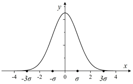where μ is the mean value of the normal distribution and μ = 0, σ is the standard deviation. Figure 3 shows the probability density of the normal distribution, and the probability density function is: