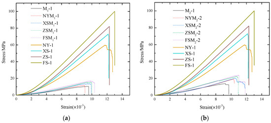 3.1. Stress–Strain Curve under Uniaxial Compressive Loading