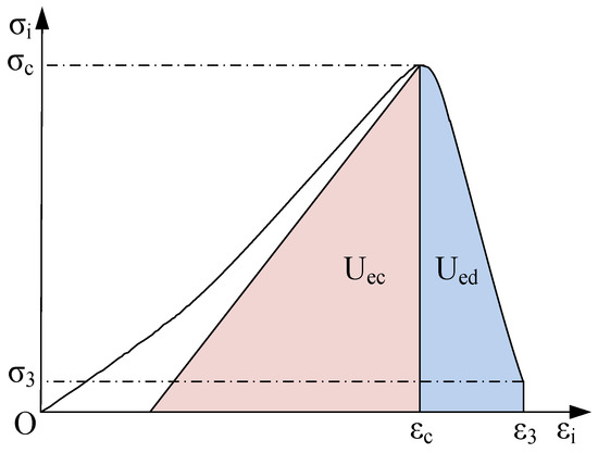 where Uec is the elastic release energy at peak point σc. It is noted that the specimen was difficult to unload at peak stress. Based on this, uniaxial cyclic loading and unloading compression tests were carried out, and the testing programs are described in Section 2. These tests were conducted to obtain the relationship between the released elastic energy and the stress state. If a given stress state, such as the peak stress, was known, then the corresponding released elastic energy could be accurately estimated.