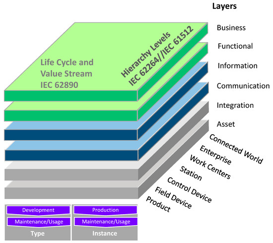 - Deutsches Institut für Normung. Reference Architecture Model Industrie 4.0 (RAMI 4.0) English Translation of DIN SPEC 91345:2016-04; Deutsches Institut für Normung: Berlin, Germany, 2019. [Google Scholar]