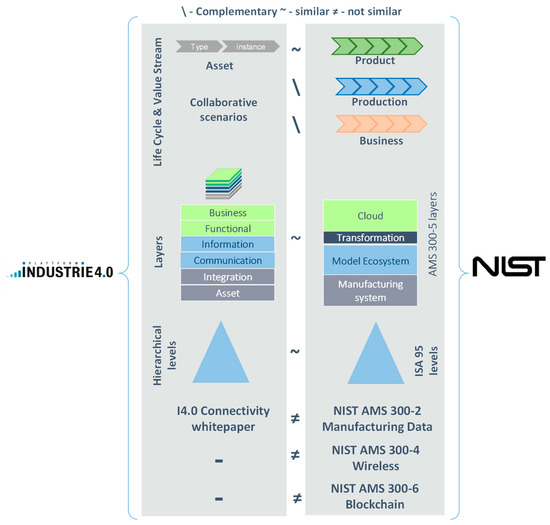 - German Federal Ministry of Economic Affairs and Energy. Alignment Report for Reference Architectural Model for Industrie 4.0/Intelligent Manufacturing System Architecture; German Federal Ministry of Economic Affairs and Energy: Berlin, Germany, 2018. [Google Scholar]