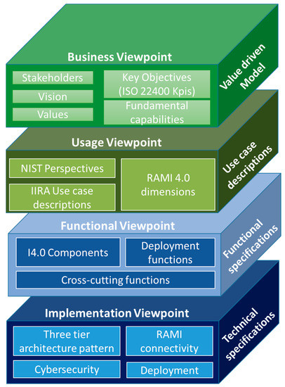The output of the usage viewpoint is a definition of the different parties, roles, and activities (tasks and workflows) in the system and the corresponding mapping between tasks and functional and implementation components. In combination with NIST perspectives and RAMI 4.0 dimensions, these components are, in turn, mapped to the corresponding RAMI 4.0 layers, product lifecycle phases, and hierarchy levels.