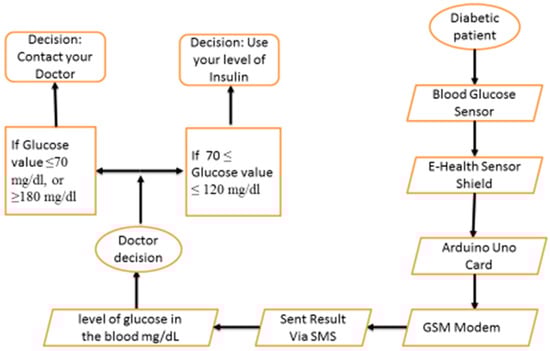 The flowchart of the system in Figure 5 shows the complete system from the measurement of glucose level in the patient until the final decision of the doctor.