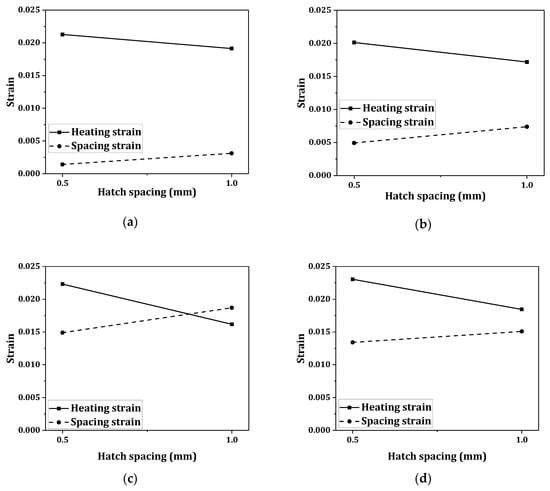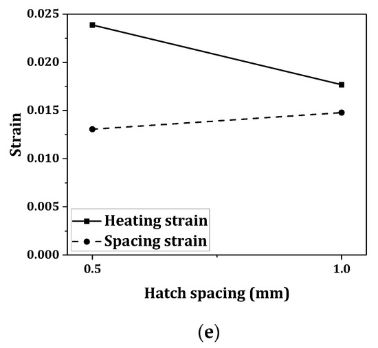 The strains on the heating line (eheating) and spacing between scan tracks (espacing) contributed to the total strain etotal [16,17,18],