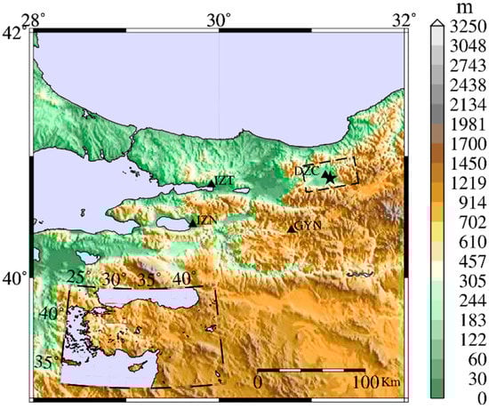 - Utkucu, M.; Nalbant, S.S.; McCloskey, J.; Steacy, S.; Alptekin, Ö. Slip distribution and stress changes associated with the 1999 November 12, Duzce (Turkey) earthquake (Mw = 7.1). Geophys. J. Int. 2003, 153, 29–241. [Google Scholar] [CrossRef]