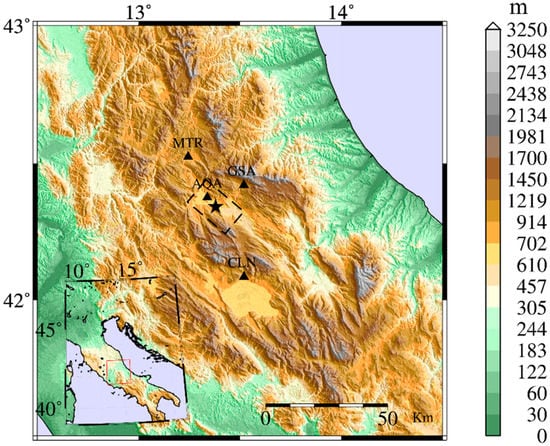 - Cirella, A.; Piatanesi, A.; Cocco, M.; Tinti, E.; Scognamiglio, L.; Michelini, A.; Lomax, A.; Boschi, E. Rupture history of the 2009 L’Aquila (Italy) earthquake from non-linear joint inversion of strong motion and GPS data. Geophys. Res. Lett. 2009, 36, L19304. [Google Scholar] [CrossRef]